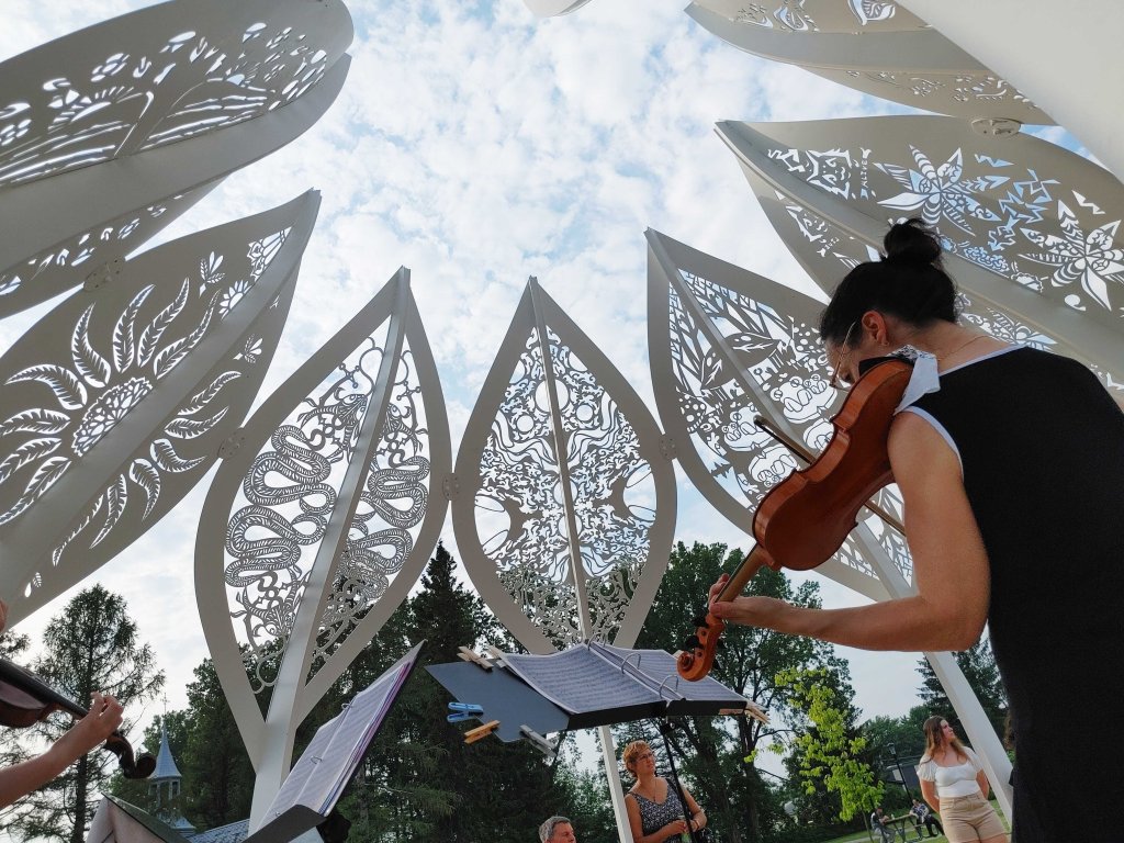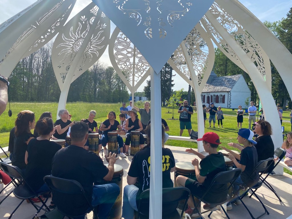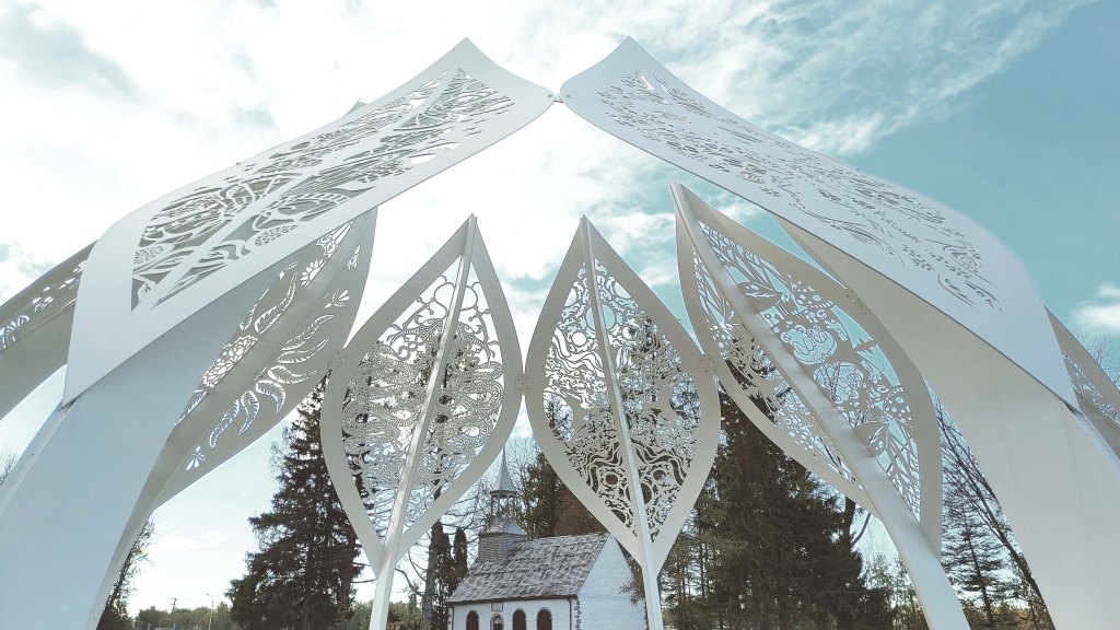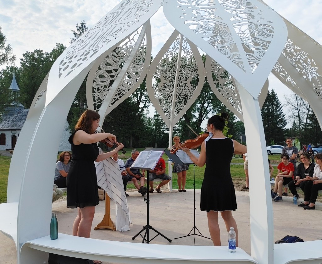 Dans le cadre du projet Culture et inclusion du ministère de la Culture et des Communications, des activités de médiation culturelle animées par Yolande Harvey ont mené à la conception d’une œuvre d’art public. En effet, 11 jeunes de la Maison des jeunes Place Jeunesse Berthier ont participé à l’élaboration artistique et conceptuelle ainsi qu’à la production d’une sculpture d’une circonférence de 60 pieds peinte du même blanc que sa voisine, la Chapelle des Cuthbert. Cette œuvre, nommée CÉNACLE, fait référence à un cercle restreint d’écrivains, d’artistes, d’hommes politiques ou de savants réunis dans un but commun. De fait, ce lieu a pour mission de favoriser des rencontres et des échanges avec l’autre en servant d’espace où se tient des concerts, des activités culturelles et des rassemblements communautaires. Un microsite https://corppatrimoinebert.wixsite.com/artpublic a été conçu pour les participants du projet pour qu’il aient accès au processus de création de l’artiste et de la production de l’oeuvre.