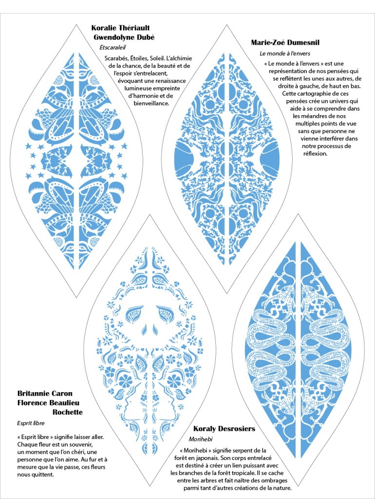 Nom des artistes participants: Koralie Thériault / Gwendolyne Dubé / Koraly Desrosier / Océanne Millette / MaÏna Dubois / Marie-Zoé Dumesnil / Félix Rouisse / Mathilde Brisette / Anaïs Mongrain / Britannie Caron / Florence Beaulieu Rochette.