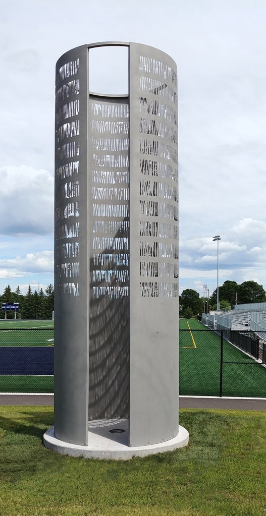 Qu’elle soit érigée pour sa valeur spirituelle, en tant que mémoire d’événements du passé ou pour son aspect architectural, la colonne laisse une trace, un repère et une forte empreinte archétypale de force et de solidité. Comme les ancêtres l’ont fait avant lui, avec les pierres levées, l’artiste témoigne à son tour, avec Columna, de la présence et de l’histoire des gens de Saint-Roch-de-l’Achigan. Les motifs de l’œuvre laissent présager un récit historique, une forme d’écriture ou l’aspect d’un génome. Ces empreintes, quelle que soit l’interprétation que l’on en fait, nous laissent croire en la présence humaine, à son identité propre.