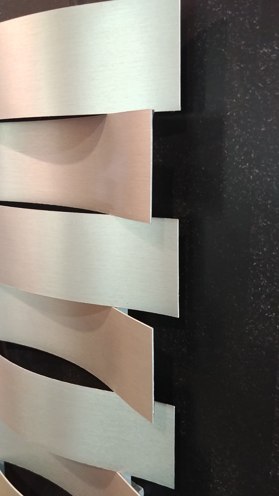 Ces éléments théoriques qui viennent appuyer l’aspect formel de l’œuvre. »Complexus » se veulent une représentation de la notion de réseau; un entrecroisement de bande d’acier représentatif d’un tissage vue de très près mais dans lequel on aurait enlevé le fil de trame.