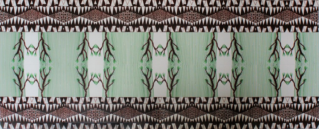 Ce travail allie d’une certaine façon « beaux arts » et « art décoratif »; deux genres qui sont souvent opposés. Ces motifs répétitifs qui nous rappellent le textile ou la tapisserie sont détournés de leur fonctionnalité pour nous être présentés dans un contexte d’exposition.