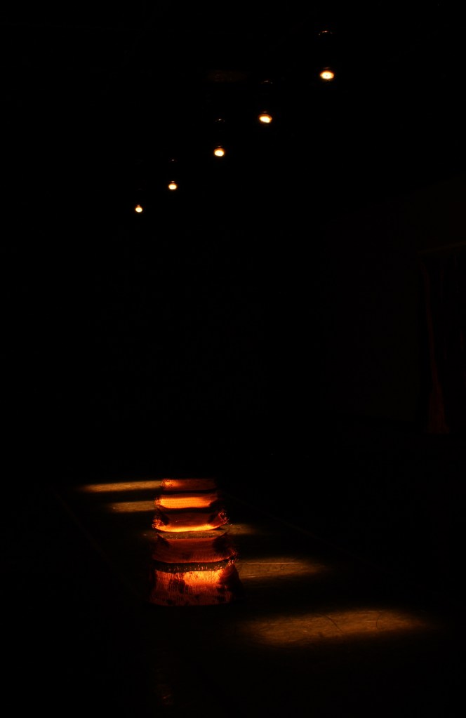 C’est ainsi que les oeuvres se sont conçu au fil des rangs en anticipant les réactions d’un système de production préétabli pour déjouer, d’une part, les contraintes physique du fil de cuivre et d’autre part, pour créer une surface non uniforme susceptible de généré des images, des récits ou des évocations pour le regardeur.