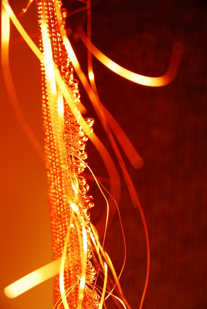 Le thème du réseau a été l’instigateur de ce projet. Pour lui donner une orientation je me suis intéressé à son étymologie. Celui-ci a signifié à l’origine un entrecroisement de fils et plus récemment, une forme de communication. Mon intention a été au départ de représenter de façon métaphorique ces deux notions, soit l’entrelacement et l’information; d’où l’idée de tisser un matériau conducteur, en l’occurrence, le fil de cuivre. Cette pratique du tissage a été un moyen processuel pour illustrer ce concept, ce qui l’en détourne de la pratique artisanale qui a pour objectif premier d’être utilitaire.